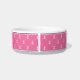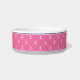 ピンクの小さな白いパーソナライズされたいかりのパターンが描かれた私たちの犬のボウルで名門私立校風の、あなたのペットの名前を前面に示し、あなたの海のポー航海のチを満たす。上と下縁どに薄い海軍がこの夏の犬の料理の名門私立校風のビーチハウスの魅力を追加する。