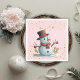 ピンク&金ゴールドリトルスノーフレーク雪だるまベビーシャワー 招待状 (正面/裏面)