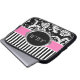 ピンク、黒く、白いダマスク織のストライプなラップトップスリーブ ラップトップスリーブ