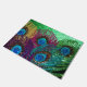 この素晴らしい形式であなたの玄関に他の人を歓迎。緑色の背景にクジャクの羽の虹。そのデザインは生命に輝く。このウェルカムマットを使用して個人デザインを表示