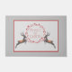 そしてモダンフェスティバルの休日をテーマにしたdoormatの特徴トナカイと手で描かれた灰色の背景に地球の赤い葉のリースのペア