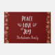 「平和、愛、喜び」 暗いレンガの赤い背景に対してお洒落、手書きのタイポグラフィとシャンパン、アンティークの金ゴールドの雪の結晶と紙吹雪ドットのビジュアル救済は、クリスマスと新年で使用する常にスタイリッシュ、このクリスマスの歓迎マットとエントリーウェイを強化する。カードや封筒、シール、ギフトラップなどの商品のマッチングやコーディネートは、私の「クリスマスピース、愛と喜び」のストアコレクションでも行われている。この素晴らしフェスティバルの祝季節と歓迎の方法は何だ!選択した名前を入力するだけで、この形式を簡単にカスタマイズできる。質問や要望があれば私に連絡して下さい。