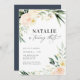 桃の水色フローラ30番目のバースデーパーティ招待状。美しいエレガントパーティーモダンテーマ。