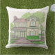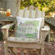 桃の農家の背に緑を付けた屋外枕;インクと水色で手描き