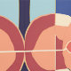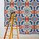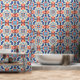 ピールスティック青オレンジ色の幾何タイルパターン 壁紙