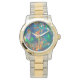 金ゴールドと銀色のトーンの時計と豪華な火のオペルのイメージ。一致するラウンドボタン、ラウンドチャーム、スタッドイヤリング、楕円形の金属キーチェーンとラウンドネックレスを参照。ACCESSORIESセクションのGemstones & Medallions Watchコレクション全体を参照。