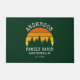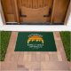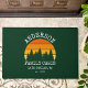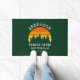 松の木素朴夏のレトロサンセットファミリー名キャビン森グリーンドアマット。家族の名前、場所、年または日付などでパーソナライズ。