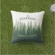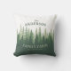あなたの家族の名前とキャビン、ロッジまたは他の望ましい文字と場所パーソナライズされたで、美しく素朴なテーマの屋外パティオ枕クッション。松の木の森のシルエットをハンターと森の緑の色合いで描いたカスタムデザイン。感じデザイナーストアにアクセスして、このようなアイテムやデザインを見る無料。感謝してい.