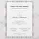 最も楽しむ旅した家族に授与された証明書の前と美しいライトピンクの家紋パターン紙の背景。カスタマイズ多くのテンプレートフィールドが現在または後に表示される。後で完全に埋めもしたいテンプレートの単語を削除する。