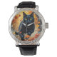 ファンタジーかわいい鮮やかな黒飛び猫 腕時計