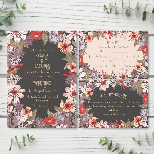レトロ手描きフローラデザイン-結婚の縦型エンクロージャカード