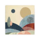 赤、オレンジ転が、ベージュ、緑、タンの色の木やはっきりした植物を持つ、のテクスチャされた丘の抽象芸術の風景。