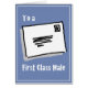 誕生日カードはファーストクラスの男性と考えられる男性。冗談は言い遊過ぎだ。ファーストクラスのメールデザインファースト・クラスの男性のための!キャプション付き封筒の漫画スタイルイラストレーション。自分のプライベートメッセージを追加する郵便配達人用のカード。郵便局挨拶カード。