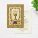 輝く金ゴールドのチャリスとIHSのシンボルを備えた美しく尊敬される最初の聖餐式の祈りの言葉カードは、キリストの体と血を象徴する小麦とブドウのユーシャルリズムのイメージに囲まれた。背景は聖餐式の神聖さを呼び起こす豊かなダマスクのパターンで飾られている。裏面にはAnima Christiの愛する祈りの言葉とコミュニケートの名前と日付のパーソナライゼーションが含まれる。この最も重要な節目に対する恵みと献身の賛美記念。
