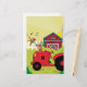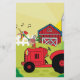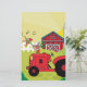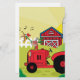 可愛いスクラップブック作りのページは、地元のトラクターの上に腰を下ろして大きな赤い納屋を背景にオンドリを置く。