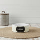 黒い切り欠きチョークボードスタイルラベルを持つ暖かい柔らかいオフホワイト背景。犬や猫の名前を手書きのフォントで付けて、ペットフードや水鉢をパーソナライズする。このペットボウルは、あなたのキッチンやヴィンテージ農家の家との宇宙に素朴な魅力を追加感じする。