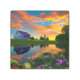 ファームハウスパープルルーフポンドアットサンライズ メタルプリント