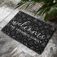 ファームハウスモダンパターンファミリーウェルカムブラック ドアマット