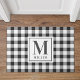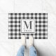 フェスティバルカスタム白黒バッファローplaid/gingham/checkパタパーソナライズされたーンにモノグラムと家族の名前を搭載したデザインの農家スタイルdoormat。