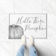 ヴィンテージ秋で入り口を探せ!この素朴な農家のスタイルグレーと白いドormatは、薄いスイープのスクリプトの中で"こんにちはThere, Pumpkin"という言葉を持っている。詳細なカボチャのイラストレーション与えとヴィンテージはスタイリッシュ、秋テーマを見る。
