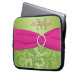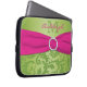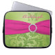 ショッキングピンクのフェイクなリボンおよび水晶のブローチが付いているこの名前入りな緑の花のダマスク織のラップトップスリーブはあなた自身の名前、イニシャル、商号、または他の文字とカスタマイズべきあなたのためのテキスト・ボックスを備えています。 カスタマイズ助けを必要としたらniteowlstudio@gmail.comに電子メールを送って下さい。