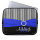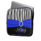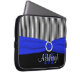 コバルトブルーのフェイクなリボンおよび宝石のブローチが付いているこの名前入りな白黒ストライプのなラップトップスリーブはあなた自身の名前、モノグラム、商号、または他の文字とカスタマイズべきあなたのためのテキスト・ボックスを備えています。 カスタマイズ助けを必要としたらniteowlstudio@gmail.comに電子メールを送って下さい。