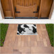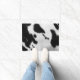 耐久および滑り止めのドア・マット。 男らしく、白黒、フェイクな牛皮のデザインを特色にします。