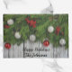休日のオーナメントと緑の美しいドールマット。パーソナライズする名前を追加。