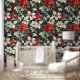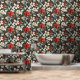 フェスティバルポインセチア花クリスマスホリディフローラルパターン壁紙はポインセチア赤と白フラワーパターンを特徴とする。クリスマスデコール、ホリデーデコール、ホームデコール、壁のアクセントとトリートメント、オフィスのデコールとパーティーデコールに最適。Evco Studio www.zazzle.com/store/evcostudioによって作成