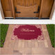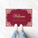 フェミニンなバーガンディピンク ウェルカム ローズゴールド リーフ ドアマット