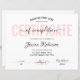 パステルフェミニンピンク色の修了証書。プロフェッショナル美しいコースの完成賞に最適。また、この卒業証明書デザインは、任意の種類の認定または卒業証書に使用できる。この美容師賞デザインはエレガントスクリプトフォントとフェミニン赤面ピンク色を特徴とする。