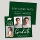 大きな白モダン字でフレンドリー3つの写真コラージュ「卒業」と卒業生のクラスの年、名前と学校やタイポグラフィの白いの大学を特集した予算と緑の卒業記念パーティシンプル。背面にパーティー詳細を追加。