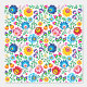 このフォークアートデザインは明るい色の花の柄を特徴とする。