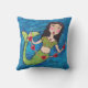 緑の尾と緑の先端を持つフォークアートの人魚と赤いドットが混ざった青の背景に光沢のある赤いハートの黄金の文字列を保持する緑のトップを持つ屋外布の装飾枕。