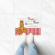 オウル オン パンプキン ギンガム パターン ドア マット。このドア マットは、笑顔のハロウィン パンプキンの上に止まるフクロウを特徴としています。「フクロウとホーとブートのためのパンプキン」という言葉と、あなたのドア番号と家族の名前が含まれています。背景には、納屋スタイルのデザインを引き立てる、きちんとしたギンガム パターンがあります。