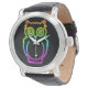 フクロウサイケデリックネオンライトボタン 腕時計