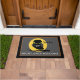 木に突き刺さった緑の目を持つ不気味な黒いフクロウと満月白熱[赤熱]光を放つと、装飾的な台本タイポグラフィ読と「夜型フクロウへようこそ」と言うカスタマイズ可能な文字を備えたハロウィーンのシーズンを受け入れなさい。 新しい住宅所有者またはハロウィン愛好家のためのユニーク贈り物を作成するために名前を追加または文字を変更する。