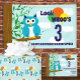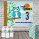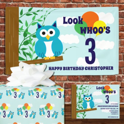 誰が誕生日なんだ!おもしろい青空とフワフワ雲の青フクロウ。子どもの年齢が気球に支えられている