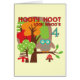 フクロウ4th誕生日Tシャツ、ボディスーツ、マグカップ、マグネット、キープサック、ポスター、バッグなど、フクロウ、木々の多くの読文字、そして「Hooty Hoot Look Whoo's 4」を特集!