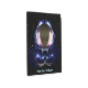 星空の背景に宇宙飛行士のヘルメットと肩に似た青と紫のフラクタル画像。独自の文字を追加
