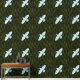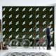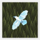 針葉樹の森によく似た緑の色調のフラクタル背景に重ね合わせた飛行中のカラス(Corvus corax)の白いシルエット。