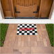 フラ市松模様にグの開始または終了ラインのノベルティ形式。出入おもしろいり口の白黒ドアマット。ランナー、オートレーサー、ドライバー、ゲーマー等のスポーツレーステーマデザイン。