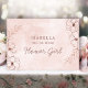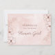 ブラッシュピンクとローズゴールドの箔押し花柄ボーダー ウェディングデザイン ハンドドローンフラワー、リーフ、ウォーターカラーの背景。春または夏のウェディングにぴったりな、ソフトなカラーパレットのシックでモダンなルック。ブラッシュピンクとローズゴールドの偽の箔押し詳細。ハンドドローンフラワーの要素、モダンでトレンディなスクリプトフォント - パーソナライズされたウェディング フラワーガールにお願いするカード。