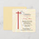 少女の確認のための美しい招待カード。赤と白輝くの鳩の十字架の後ろに金色の光線がある。赤は確認の色で、鳩は聖霊を象徴する。文字をカスタマイズして、確認のためのあなたのニーズに最適にする。この四角いカードの角は丸く、十字形の丸みを帯びたエッジを持つ結合要素を加えている。