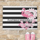 このデザインは、ブラックとホワイトのペイズリーの背景にピンク色の色合いの万華鏡を持つフラミンゴを特徴とストライプしている。文字を持つ熱帯パーソナライズされた鳥デザインはモダンドーユニークマット。
