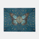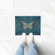 フラワーオブライフバタフライ-青い宝石と金ゴールド ドアマット