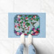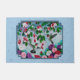 広尾のハチドリ飛んでいる、花から蜜を飲み、紫、赤、白、ピンクの明るい赤紫色とペチュニアで満たされた明るい色の春の庭で花。野生生物アーティストのクリスタ・S・フォレストによるオリジナル油彩画から制作されたリアルなアートワーク。