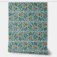 新夏ブリーズフローラ壁紙 – フラワーパターンオレンジのスワールベリーデザインは手書きで、緑のと丸いオレンジの果実とシームレスに繰り返しフローラルのパターンを示している離れ。このパターンの主な色は、緑、オレンジ、黄色、青、ティール(緑がかった色)の青の背景にある。