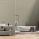 フローラフェミニン壁紙は、淡い灰色の背景にピンかわいらしク、黄色、緑の花や植物学から作成された。オリジナルアートby Leslie Larson.