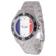 フランス国旗(ラベル付き)ステンレス時計。VIRGINIA5050,設計の製品とギフトカスタムはwww.zazzle.com/virginia5050*,ポール・クレー・ギフトはwww.zazzle.com/paulkleegiftshop*,ギフトはzazzle.com/InternationalGifts国際的,ギフトはzazzle.com/RetirementGiftStore,誕生日ギフトはzazzle.com/BirthdayGiftStore,ギフトはI LOVEギフトはzazzle.com/ILoveGiftStore*,フロリダギフトはzazzle.com/FloridaGiftStore*に